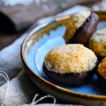 I can also recommend adding some extra flavor to the coconut macaroons. Try for example to add some cinnamon or vanilla to the dough or use a dark chocolate with a orange taste for the chocolate layer. You can also dip the chocolate covered macaroons in some finely chopped nuts like hazelnuts, almonds or cashew nuts. It’s really really good! This portion makes 5 small macaroons but double the recipe, if you want a larger batch.