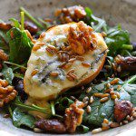 Pear and Gorgonzola salad with rye berries and lemon-roasted nuts